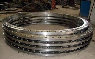 法蘭(Flange),又叫法蘭凸緣盤或突緣。法蘭是管子與管子之間相互連接的零件,用于管端之間的連接;也有用在設(shè)備進(jìn)出口上的法蘭,用于兩個設(shè)備之間的連接,如減速機(jī)法蘭。法蘭連接或法蘭接頭,是指由法蘭、墊片及螺栓三者相互連接作為一組組合密封結(jié)構(gòu)的可拆連接。管道法蘭系指管道裝置中配管用的法蘭,用在設(shè)備上系指設(shè)備的進(jìn)出口法蘭。法蘭上有孔眼,螺栓使兩法蘭緊連。法蘭間用襯墊密封。法蘭分螺紋連接(絲扣連接)法蘭、焊接法蘭和卡夾法蘭。法蘭都是成對使用的,低壓管道可以使用絲接法蘭,四公斤以上壓力的使用焊接法蘭。兩片法蘭盤之間加上密封墊,然后用螺栓緊固。不同壓力的法蘭厚度不同,它們使用的螺栓也不同。水泵和閥門,在和管道連接時,這些器材設(shè)備的局部,也制成相對應(yīng)的法蘭形狀,也稱為法蘭連接。凡是在兩個平面周邊使用螺栓連接同時封閉的連接零件,一般都稱為"法蘭",如通風(fēng)管道的連接,這一類零件可以稱為"法蘭類零件"。但是這種連接只是一個設(shè)備的局部,如法蘭和水泵的連接,就不好把水泵叫"法蘭類零件"。比較小型的如閥門等,可以叫"法蘭類零件"。 減速機(jī)法蘭,用于電機(jī)與減速機(jī)的連接,以及減速機(jī)與其它設(shè)備之間的連接。